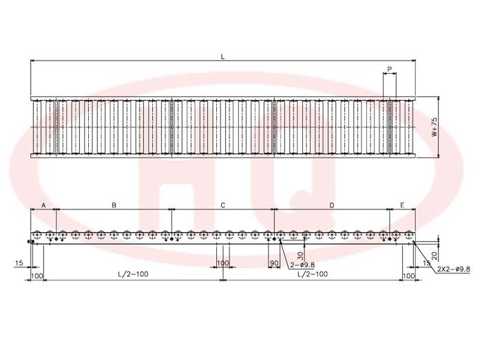 | 型 號 | 滾筒外徑(φ)×壁厚(t) 軸承 | 軸外徑(φ)×壁厚(t) 加工 | 支架形狀I×K×t 機高(H) | 機 長 L | 滾 筒幅 寬 W | 滾筒間距 P | 回轉半徑 R | ||||||