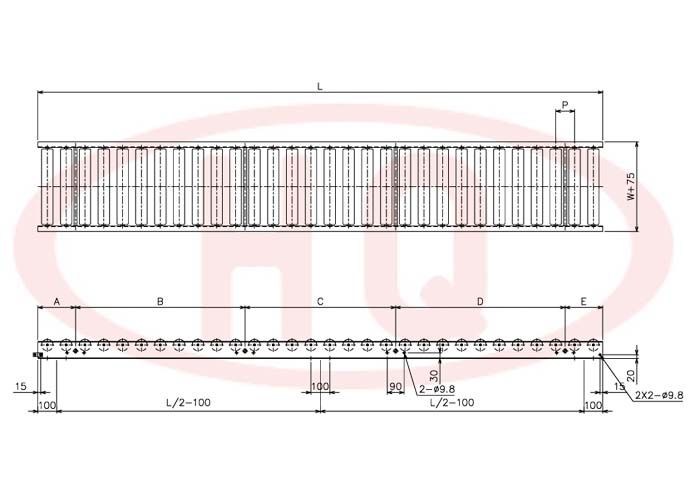 | 輸送機幅寬 W+75 (mm) | 175 | 275 | 375 | 475 | 575 | 675 | 775 | 875 | 975 | 1,075 | ||