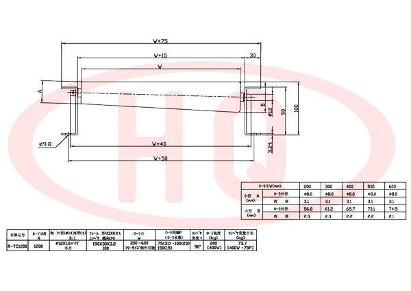 | 型 式 | 滾 筒 幅 寬 W (mm) | 200 | 300 | 400 | 500 | 600 | ||